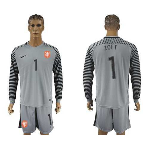 • Holland #1 Zoet Grey Goalkeeper Long Sleeves Soccer Country Jersey