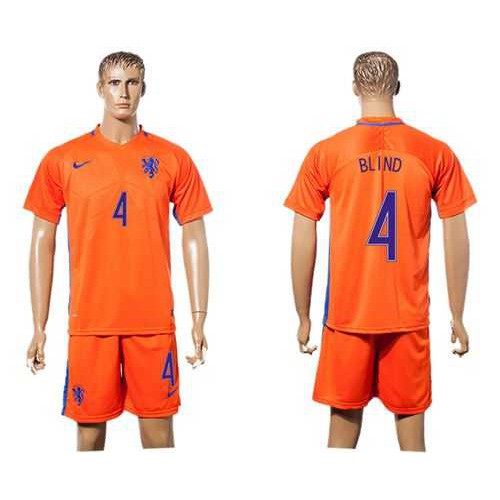 Holland #4 Blind Home Soccer Country Jersey