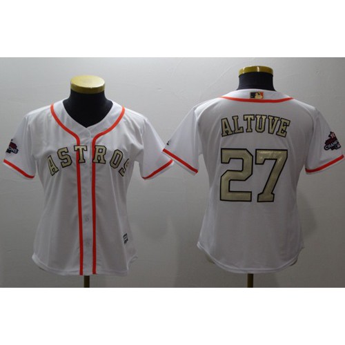 • Houston Astros #27 Jose Altuve White 2017 World Series Champions Gold Program Cool Base Womens Stitched MLB Jersey