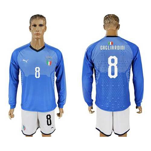 Italy #8 Gagliardini Blue Home Long Sleeves Soccer Country Jersey