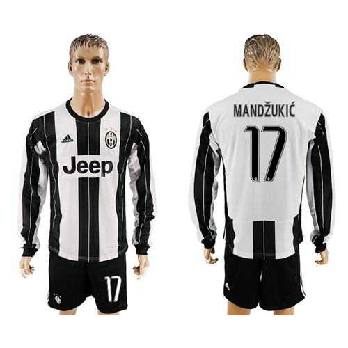 Juventus #17 Mandzukic Home Long Sleeves Soccer Club Jersey