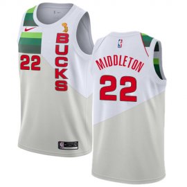 Nike Milwaukee Bucks #22 Khris Middleton 2021 NBA Finals Champions Swingman City Edition Jersey Cream Mens