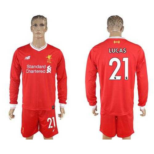 Liverpool #21 Lucas Home Long Sleeves Soccer Club Jersey