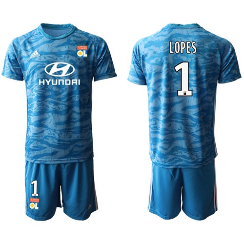 Lyon #1 Lopes Blue Goalkeeper Soccer Club Jersey