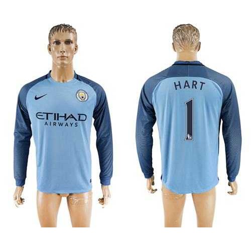 Manchester City #1 Hart Home Long Sleeves Soccer Club Jersey