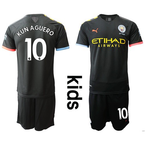 Manchester City #10 Kun Aguero Away Kid Soccer Club Jersey