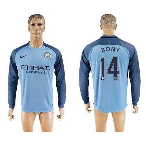 Manchester City #14 Bony Home Long Sleeves Soccer Club Jersey