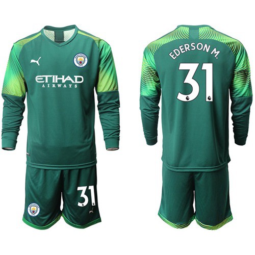 Manchester City #31 Ederson M. Army Green Goalkeeper Long Sleeves Soccer Club Jersey