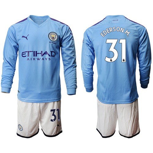 Manchester City #31 Ederson M. Home Long Sleeves Soccer Club Jersey