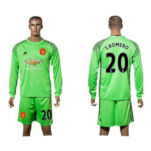 Manchester United #20 Sromero Green Goalkeeper Long Sleeves Soccer Club Jersey