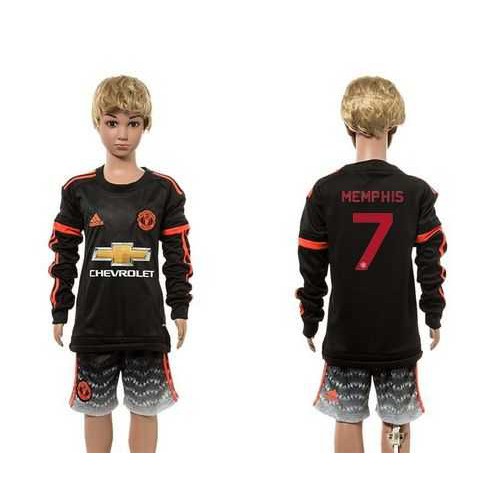 Manchester United #7 Memphis SEC Away Long Sleeves Euro Premium Kid Soccer Club Jersey