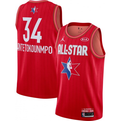 Mens Milwaukee Bucks #34 Giannis Antetokounmpo Red 2020 NBA All-Star Game Swingman Finished Jersey