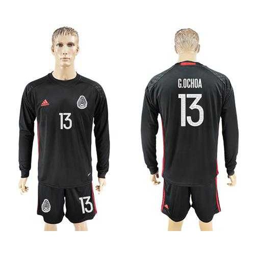 Mexico #13 G.Ochoa Black Long Sleeves Goalkeeper Soccer Country Jersey