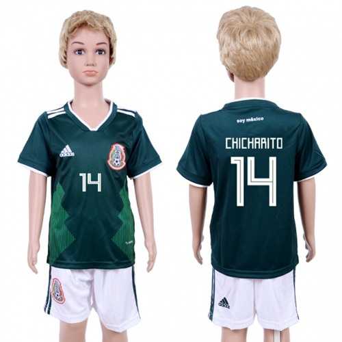 Mexico #14 Chicharito Home Kid Soccer Country Jersey