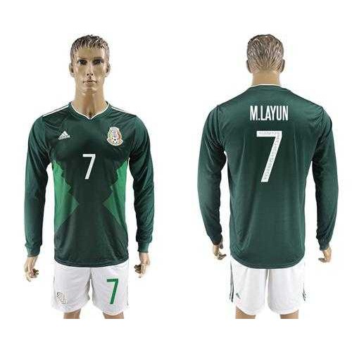 Mexico #7 M.Layun Home Long Sleeves Soccer Country Jersey