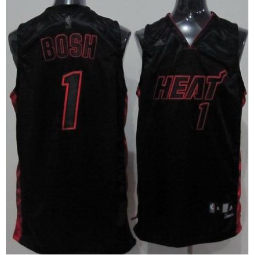 • Miami Heat 1 Bosh NEW Black Jersey Black-Red Number Cheap