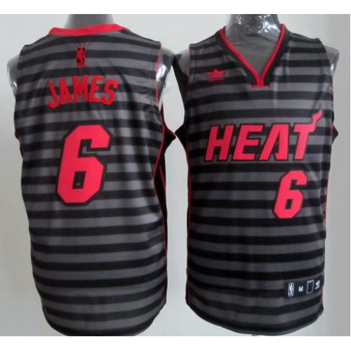 Miami Heat 6 Lebron James Grey Whith Black Strip Revolution 30 Swingman NBA Jerseys Cheap