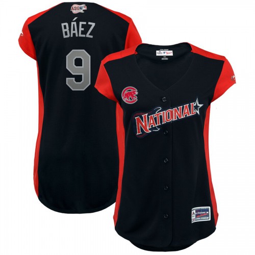 • National League #9 Javier Baez Majestic Womens 2019 MLB All-Star Game Workout Player Jersey Navy