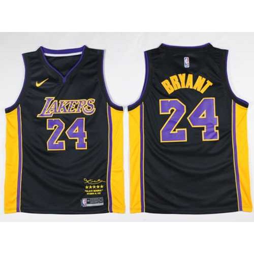 • Los Angeles Lakers 24 Kobe Bryant Black Throwback NBA Jerseys Gold Number Cheap
