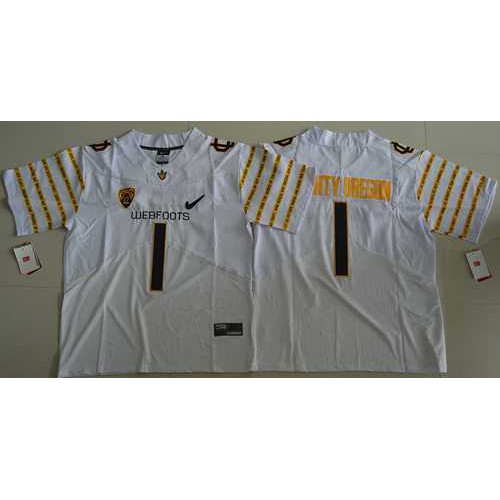 Oregon Ducks #1 Mighty Oregon White Webfoots 100th Rose Bowl Game Elite Stitched NCAA Jersey