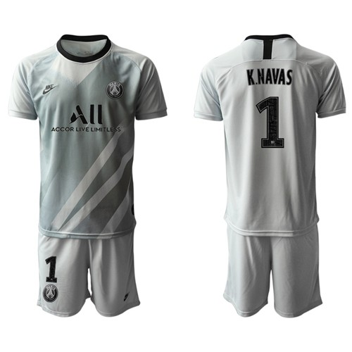 Paris Saint-Germain #1 K.Navas Grey Goalkeeper Soccer Club Jersey