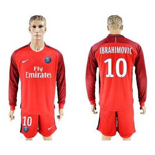 Paris Saint-Germain #10 Ibrahimovic Red Long Sleeves Soccer Club Jersey