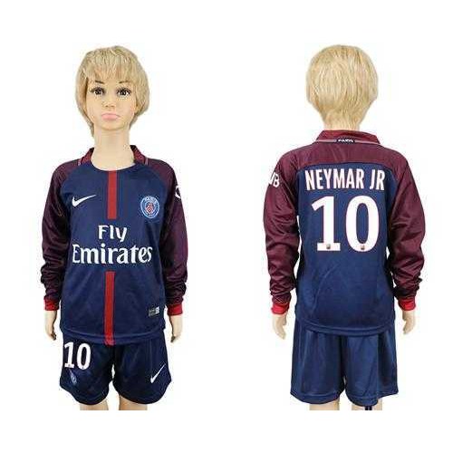 Paris Saint-Germain #10 Neymar Jr Home Long Sleeves Kid Soccer Club Jersey
