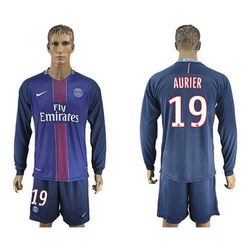 Paris Saint-Germain #19 Aurier Home Long Sleeves Soccer Club Jersey