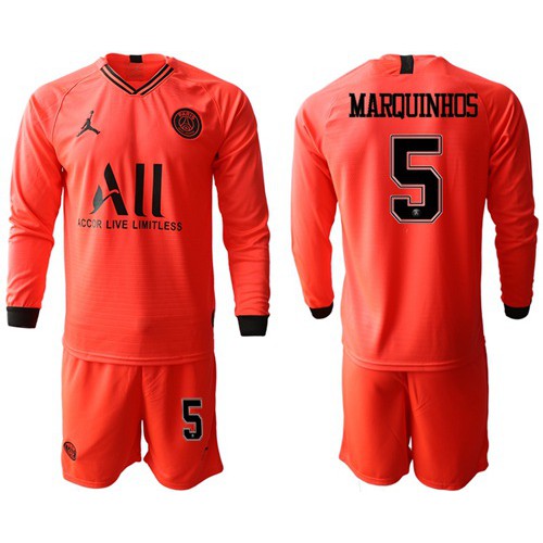 Paris Saint-Germain #5 Marquinhos Red Jordan Long Sleeves Soccer Club Jersey