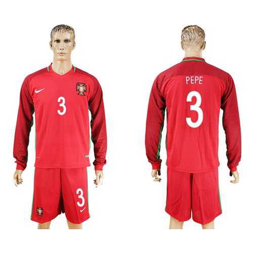 Portugal #3 Pepe Home Long Sleeves Soccer Country Jersey