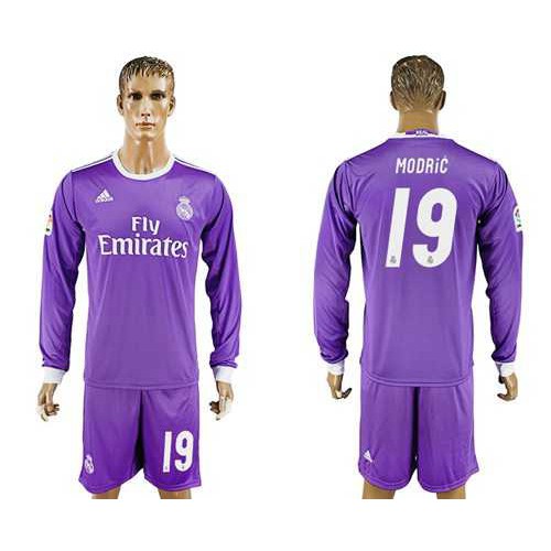 Real Madrid #19 Modric Away Long Sleeves Soccer Club Jersey