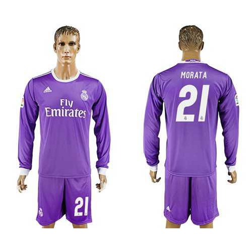 Real Madrid #21 Morata Away Long Sleeves Soccer Club Jersey