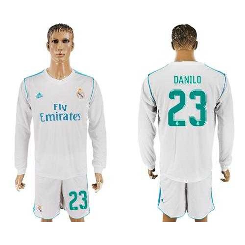 Real Madrid #23 Danilo White Home Long Sleeves Soccer Club Jersey