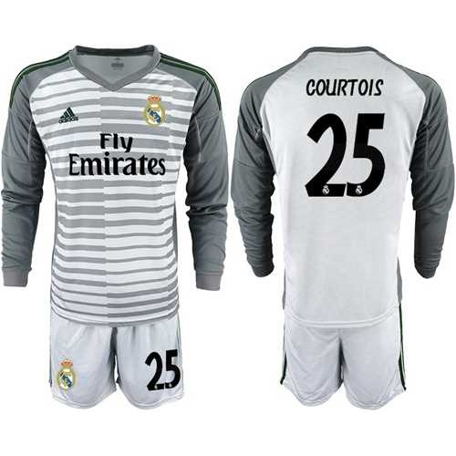 Real Madrid #25 Courtois Grey Goalkeeper Long Sleeves Soccer Club Jersey