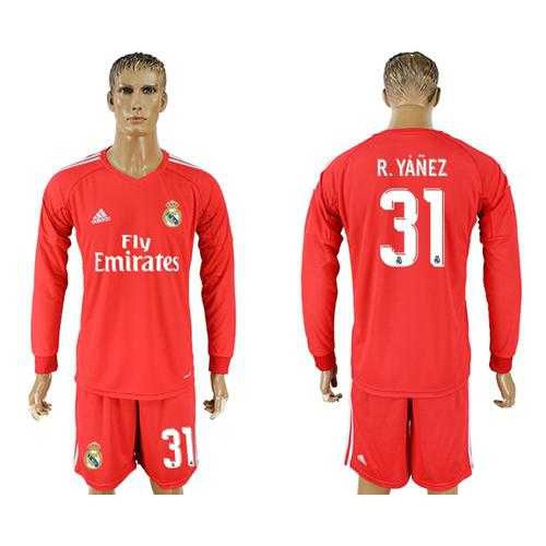 Real Madrid #31 R.Yanez Red Goalkeeper Long Sleeves Soccer Club Jersey