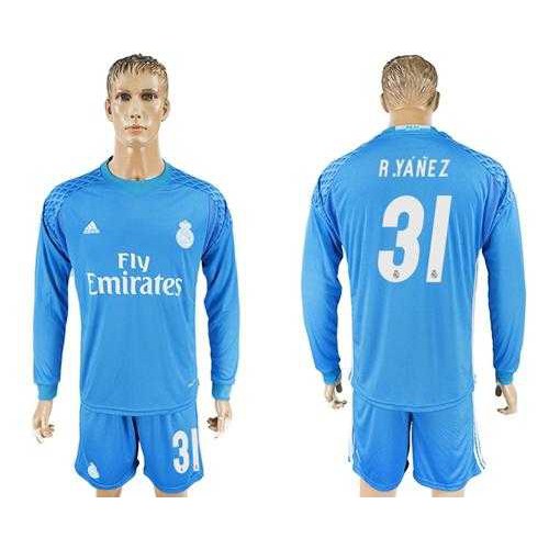 Real Madrid #31 R.Yanez Sky Blue Goalkeeper Long Sleeves Soccer Club Jersey