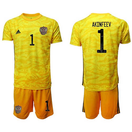 Russia #1 Akinfeev Yellow Goalkeeper Soccer Country Jersey