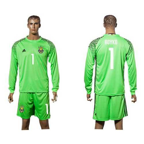 Ukraine #1 Boyko Green Goalkeeper Long Sleeves Soccer Country Jersey