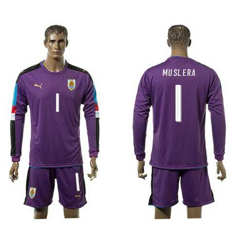 • Uruguay #1 Muslera Purple Long Sleeves Soccer Country Jersey