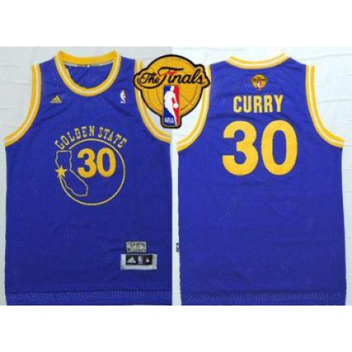Warriors #30 Stephen Curry Blue New Throwback The Finals Patch Stitched NBA Jersey