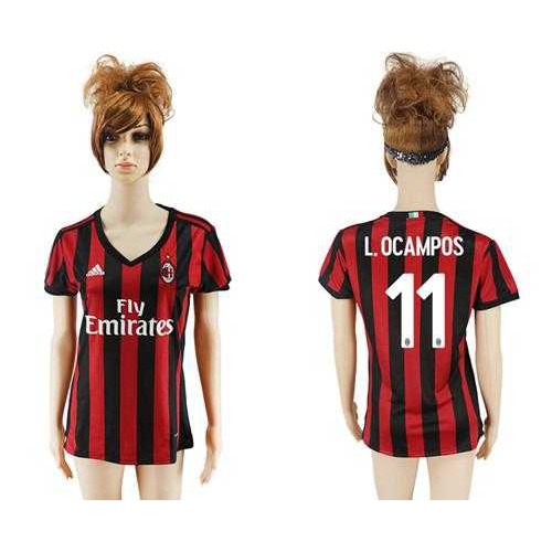 Womens AC Milan #11 L.Ocampos Home Soccer Club Jersey
