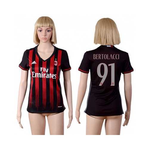 Womens AC Milan #91 Bertolacci Home Soccer Club Jersey