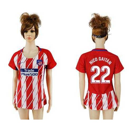 Womens Atletico Madrid #22 Nico Gaitan Home Soccer Club Jersey