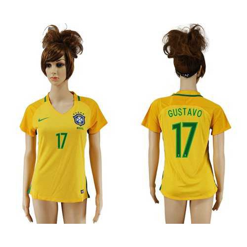 Womens Brazil #17 Gustavo Home Soccer Country Jersey