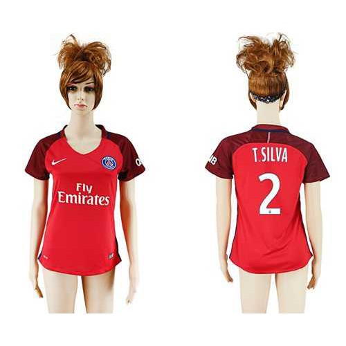 Womens Paris Saint-Germain #2 T.Silva Away Soccer Club Jersey