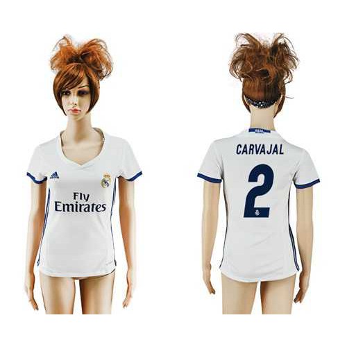 Womens Real Madrid #2 Carvajal Home Soccer Club Jersey