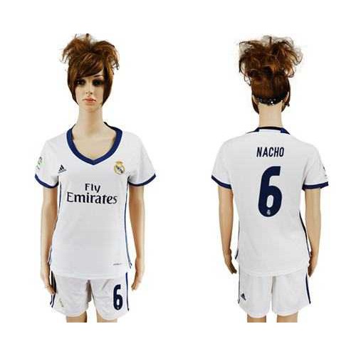 Womens Real Madrid #6 Nacho Home Soccer Club Jersey