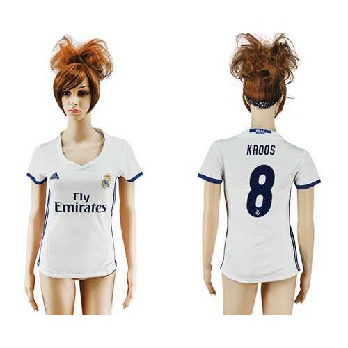 Womens Real Madrid #8 Kroos Home Soccer Club Jersey